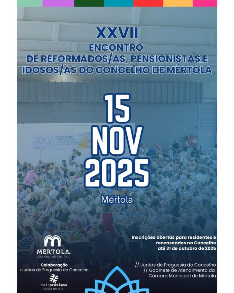 O XXVII encontro de reformados/as, pensionistas e idosos/as do concelho irรก decorrer dia ๐๐ ๐๐ ๐ง๐จ๐ฏ๐๐ฆ๐๐ซ๐จ ๐๐ ๐๐๐๐, em Mรฉrtola.